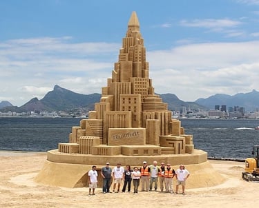 Responsável pela construção do castelo de areiade 12,60 metros de altura no Rio de Janeiro.